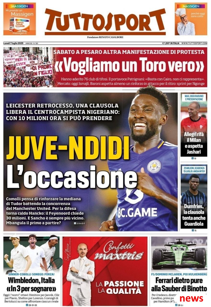 Giám đốc thể thao Juventus Comoli có kế hoạch củng cố đội hình tiền vệ của Tudor bằng cách ký NDIDI, và cũng cần phải cạnh tranh với Manchester United. Về mặt ký kết phòng thủ, hậu vệ Feyenoord Hanzko một lần nữa trở thành mục tiêu phổ biến, với câu lạc bộ yêu cầu 30 triệu euro. Sự tham gia của Sancho đang tiến gần hơn và Mbangula sẽ trở thành người chơi đầu tiên rời khỏi mùa hè này.