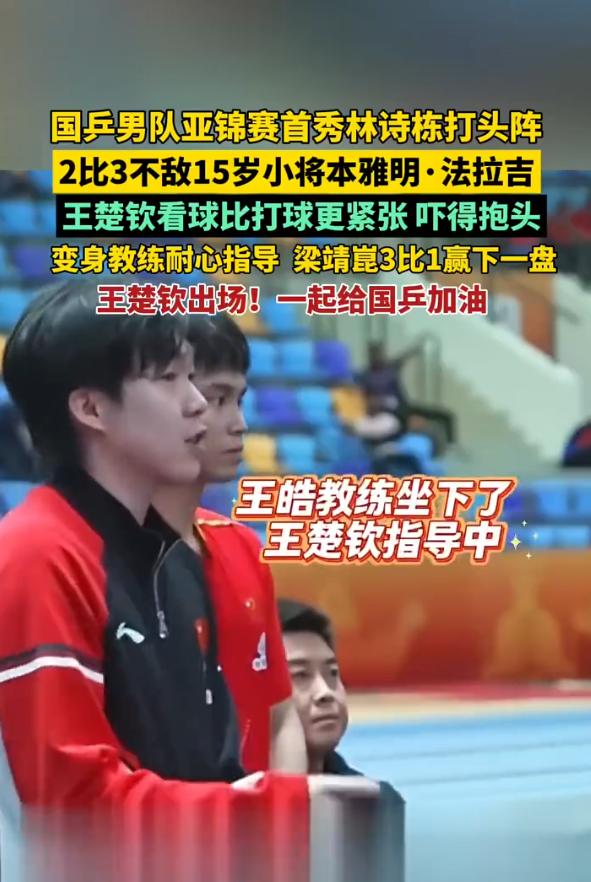 Ngay khi Wang Chuqin kết thúc trận đấu bên lề, anh ấy nhanh chóng kéo Lin Shidong xem lại trận đấu và nói: "Cứ để Lin Shidong chiến đấu." Vương Hạo ngồi làm "giám sát".