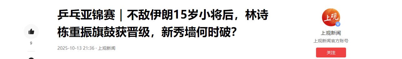 Lin Shidong của Đội tuyển bóng bàn quốc gia được đào tạo để trở thành người kế nhiệm, nhưng giờ anh ấy đã phải chịu thất bại ở Giải vô địch châu Á. Nhiều chi tiết đã được tiết lộ. Ban huấn luyện cũng có trách nhiệm, tài năng tốt phải được trau dồi kỹ càng.