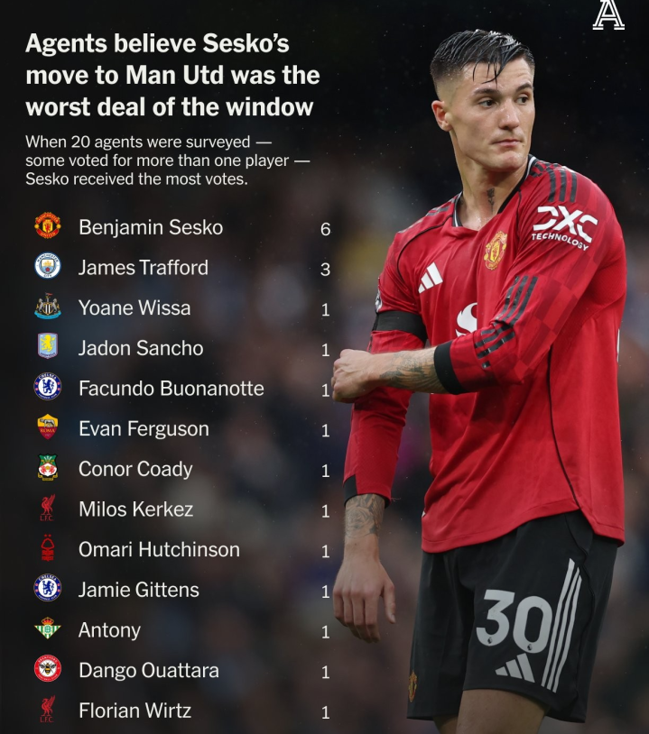 Cách đây không lâu, The Athletic đã công bố bảng xếp hạng những bản hợp đồng đáng thất vọng nhất mùa hè này thông qua sự bình chọn của hơn 20 đại lý bóng đá. Trong số đó, Sheshko, người được Manchester United chi 76,5 triệu euro để chiêu mộ từ Leipzig, đứng đầu.
