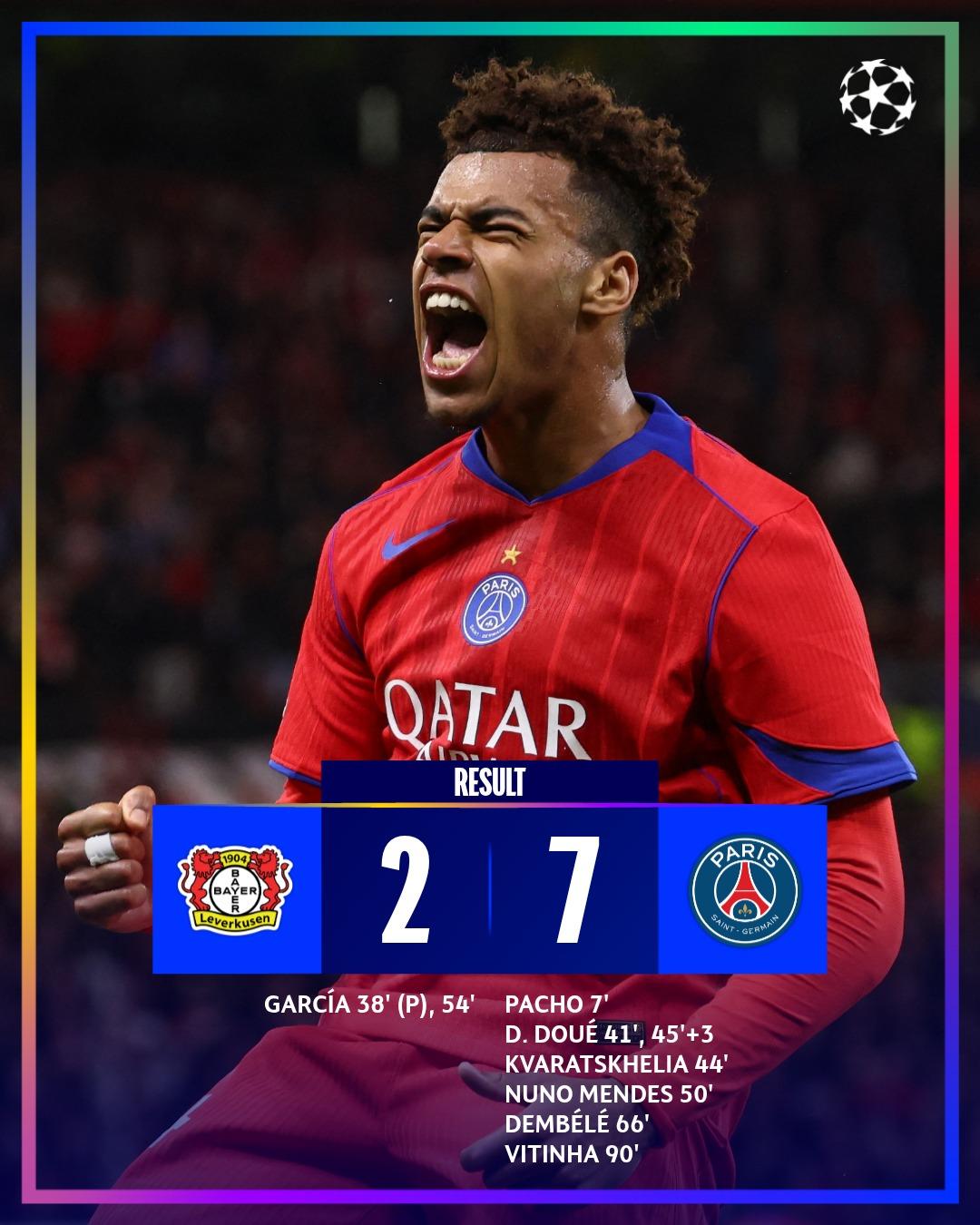Tám đội dẫn đầu hiện tại trên bảng xếp hạng Champions League là Paris, Bayern, Inter Milan, Arsenal, Real Madrid, Dortmund, Manchester City và Newcastle United. Trong số đó, Paris, Bayern, Inter Milan, Arsenal và Real Madrid đã thắng 3 trận và tích lũy được 9 điểm.
