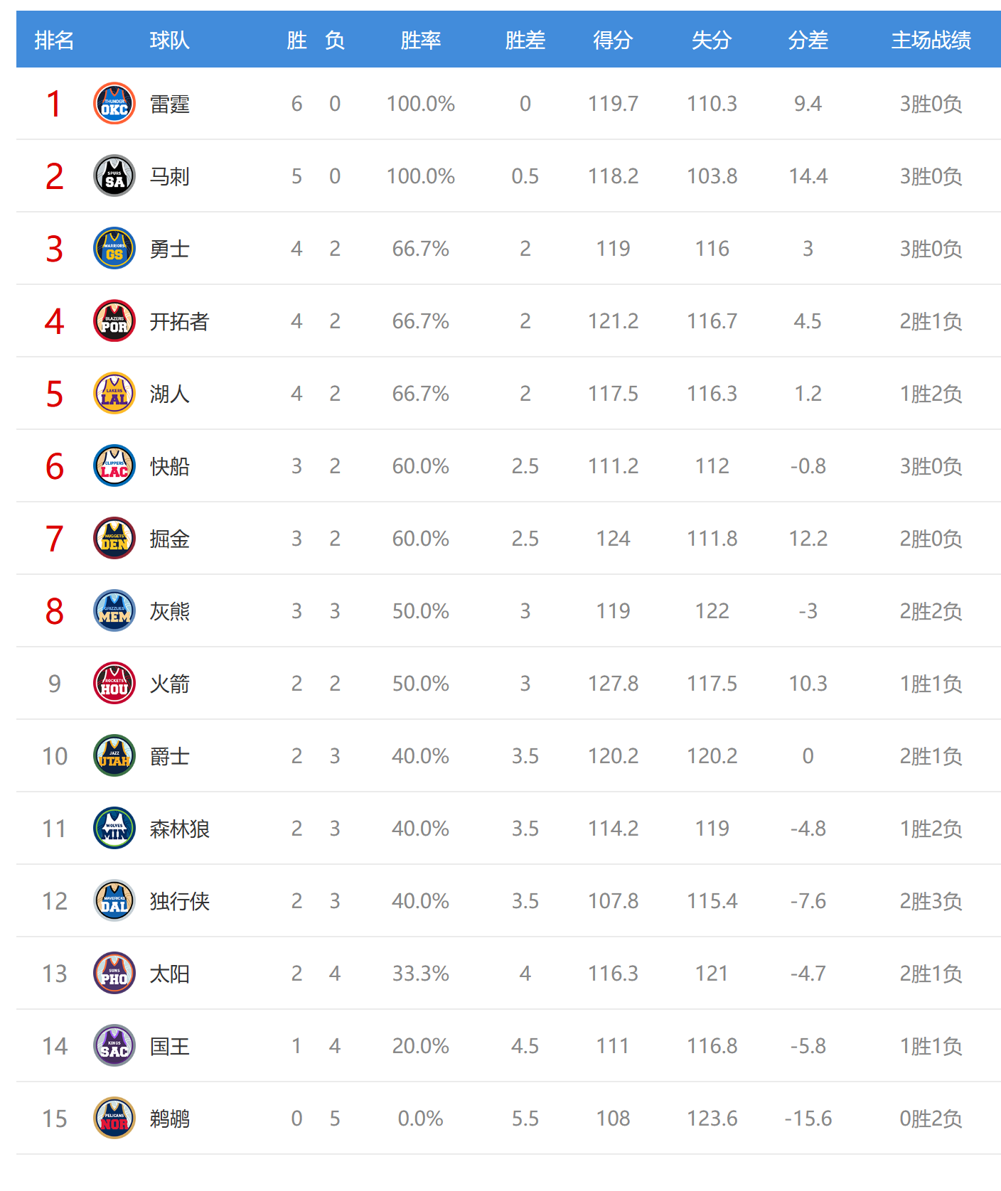 Sau khi Trail Blazers làm Nuggets thất vọng, họ có thành tích 4 thắng và 2 thua, đồng thời thứ hạng của họ tụt từ thứ năm xuống thứ tư tại Western Conference. Nuggets bất ngờ thua cuộc và tặng Warriors một món quà lớn. Warriors (4 thắng và 2 thua) không thi đấu hôm nay đã trở lại vị trí thứ ba tại Western Conference. Nuggets có 3 trận thắng và 2 trận thua, đồng thời tụt hạng từ vị trí thứ 3 xuống thứ 7.